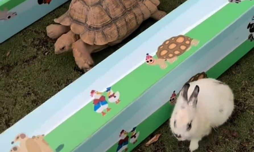Το γνωστό μύθο του Αισώπου χρησιμοποίησαν στην Κίνα και έβαλαν έναν λαγό και μια χελώνα να αναμετρηθούν σε έναν αγώνα δρόμου. Έβαλαν δύο διαδρόμους, αφετηρία και τερματισμό και άφησαν τα συμπαθέστατα ζώα να τρέξουν.