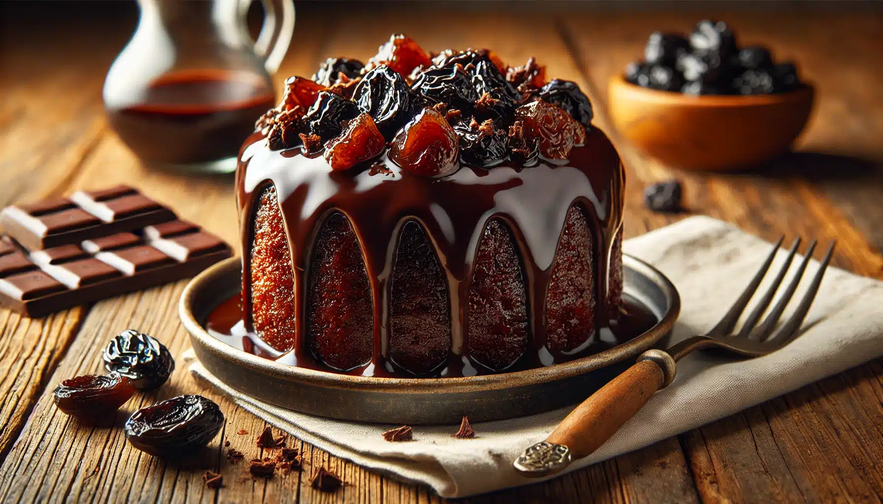 Σιροπιαστό γλυκό με σοκολάτα και δαμάσκηνα
