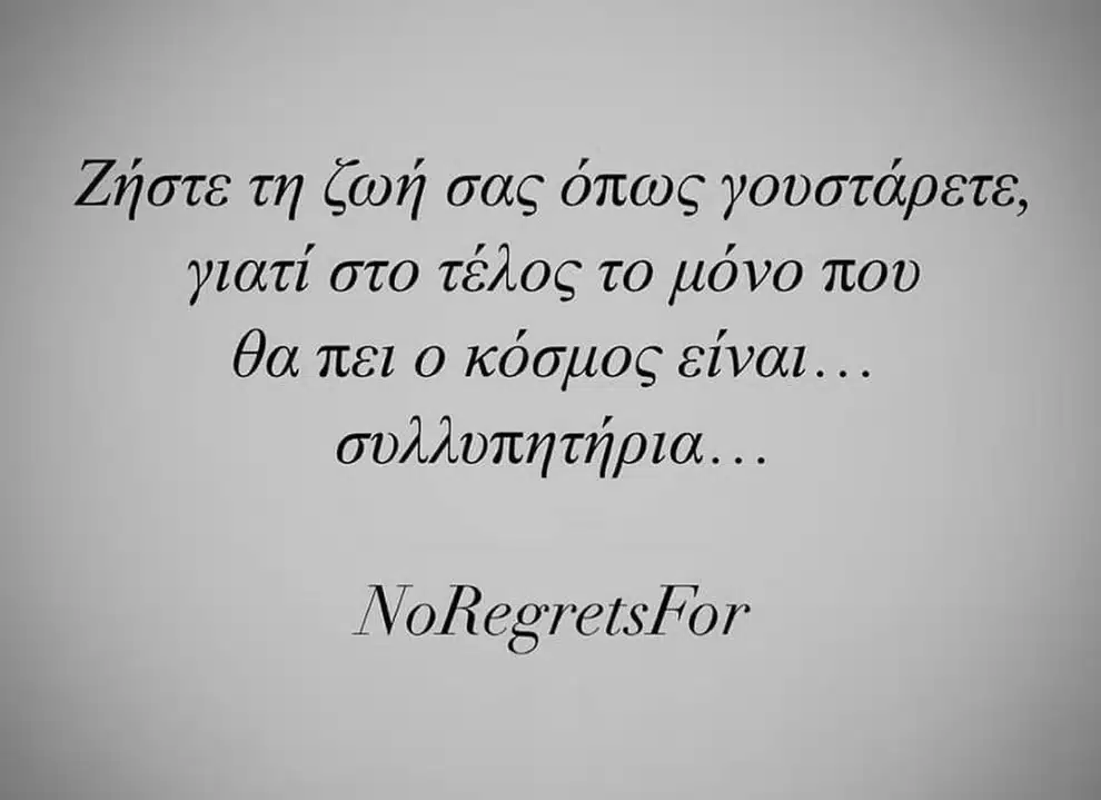 Ζήστε την ζωή σας όπως γουστάρετε γιατί στο τέλος το μόνο που θα πει ο κόσμος είναι συλλυπητήρια