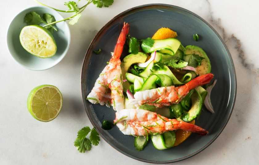 Παραδοσιακή μεξικάνικη συνταγή με τις γαρίδες σχεδόν ωμές, «ψημένες» μόνο στην όξινη σάλτσα. Αν δεν τις θέλουμε ωμές, τις βράζουμε για 1 λεπτό σε αλατισμένο νερό που κοχλάζει.
