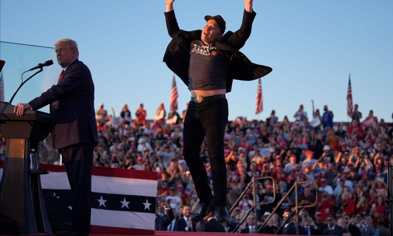 Όλα συνέβησαν στις 6 Οκτωβρίου στο Μπάτλερ της Πενσυλβάνια, όπου είχε γίνει απόπειρα δολοφονίας εναντίον του Ντόναλντ Τραμπ. Ο Διευθύνων Σύμβουλος της SpaceX και της Tesla που αγόρασε επίσης την πλατφόρμα X (πρώην Twitter), ανέβηκε στη σκηνή φορώντας ένα ολόμαυρο καπέλο με το σύνθημα MAGA («Make America Great Again» – Κάντε ξανά σπουδαία την Αμερική) και ένα μπλουζάκι «Occupy Mars» (Κατακτήστε τον πλανήτη Άρη). Ο Έλον Μασκ άρχισε να πηδάει πάνω-κάτω, αποσπώντας όλων τα βλέμματα.