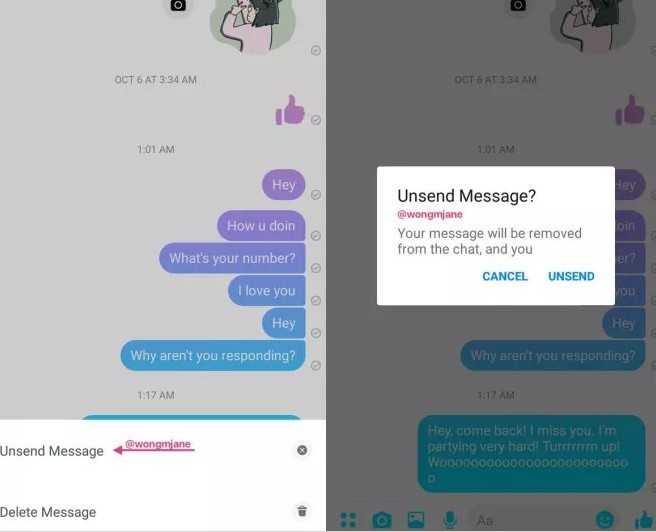 Όταν κάνεις edit στα μηνύματα σε μια συνομιλία, θα έχεις την επιλογή του «Unsend Message», το οποίο θα εμφανίζεται πάνω απ’ το «Delete Message».