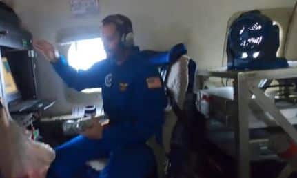 Στο βίντεο φαίνεται ο ηλεκτρολόγος μηχανικός Τομ Μπράνιγκαν να κάθεται μπροστά σε ειδικά μηχανήματα ενώ το αεροσκάφος ταρακουνιέται βίαια.