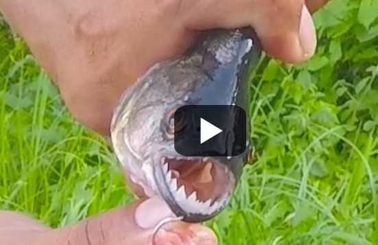 Με απόλυτη ψυχραιμία, έμπειρος ψαράς βγάζει απ’ το αγκίστρι της πετονιάς του… πιράνχας!