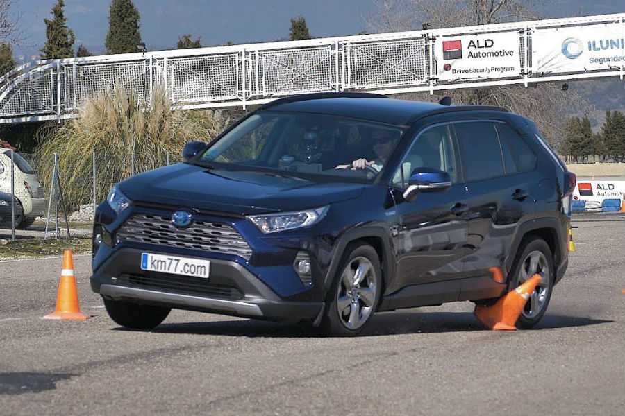 Τα παιδιά του km77.com υπέβαλλαν την υβριδική εκδοχή του ιαπωνικού SUV, στην δικίνητη έκδοση των 218 ίππων, στην δοκιμασία απότομης αλλαγής λωρίδας. Η αναγνωριστική προσπάθεια ήταν στα 75 χλμ./ώρα και οι αντιδράσεις του RAV4 παραλίγο να πιάσουν εξαπίνης τον οδηγό. Το αυτοκίνητο εμφάνισε τάσεις γλιστρήματος από την πρώτη κιόλας τιμονιά, αλλά σε ελεγχόμενο βαθμό. Εκεί που χάθηκε η «μπάλα» ήταν στην δεύτερη κίνηση του τιμονιού, η οποία σηματοδοτεί την είσοδο στον δεύτερο διάδρομο. Το πίσω μέρος έφυγε απότομα, παρασέρνοντας τους κώνους στο πέρασμά του και ουσιαστικά στέλνοντας «καρφί» το αυτοκίνητο σε αυτούς του τρίτου.
