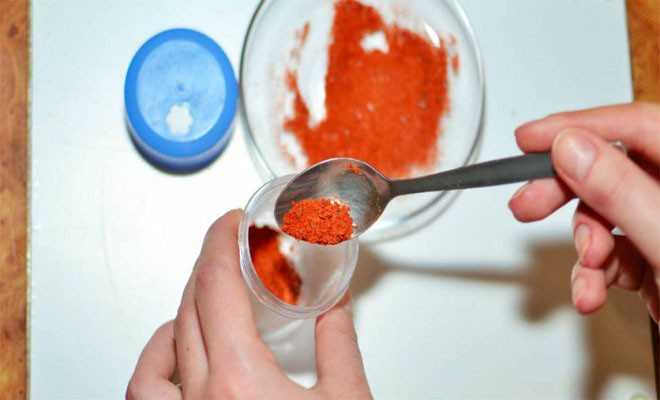 Σκόνη από κόκκινο πιπέρι, μερικές φρέσκιες, κόκκινες πιπεριές, 50% αλκοόλ (μπορείτε να χρησιμοποιήσετε βότκα),1 λίτρο μπουκάλι νερό και γάντια.