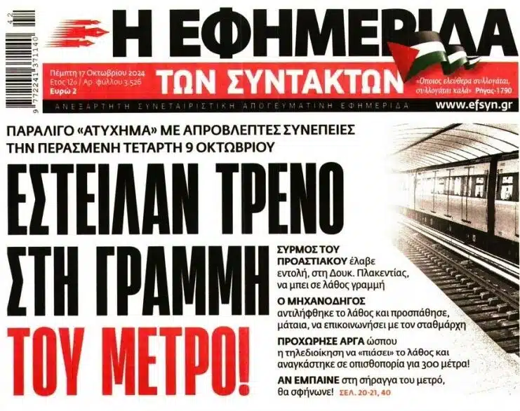Όπως αναφέρει το δημοσίευμα της εφημερίδας, συρμός προαστιακού έλαβε εντολή στη Δουκίσσης Πλακεντίας να μπει σε λάθος γραμμή.