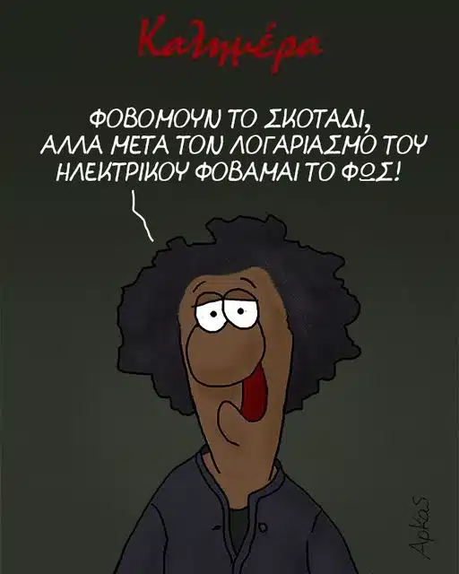 Ο γνωστός σκιτσογράφος Αρκάς, με το χαρακτηριστικό του χιούμορ, καλημερίζει το κοινό του σήμερα με ένα σκίτσο αφιερωμένο στο πρόβλημα της ακρίβειας στο ηλεκτρικό ρεύμα.