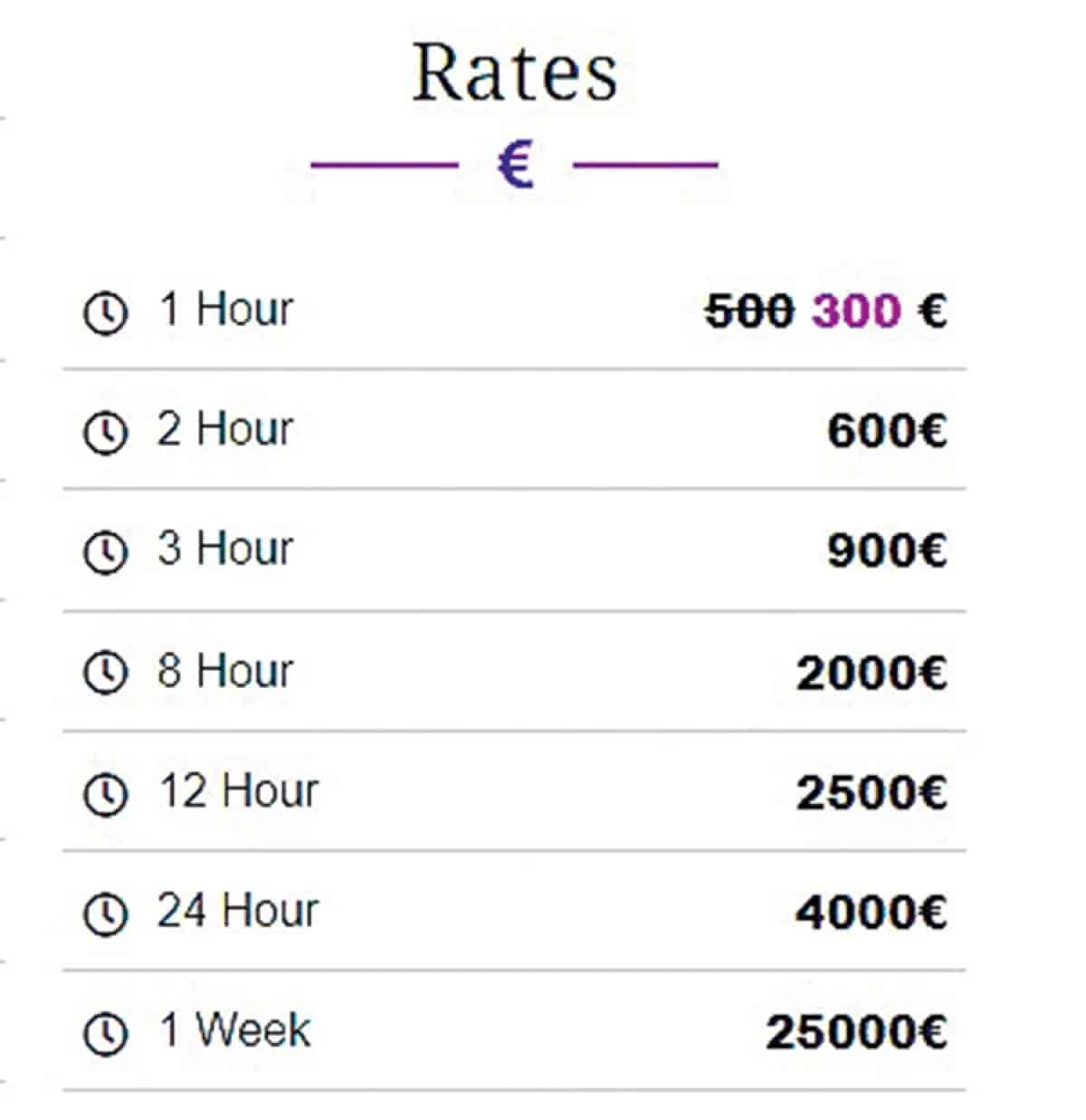 Σύμφωνα με το ρεπορτάζ, η Τζούλια Αλεξανδράτου προσφέρει υπηρεσίες με ωράριο από τις 12 το μεσημέρι έως τις 2 το βράδυ. Οι τιμές για τις υπηρεσίες της είναι συγκεκριμένες: