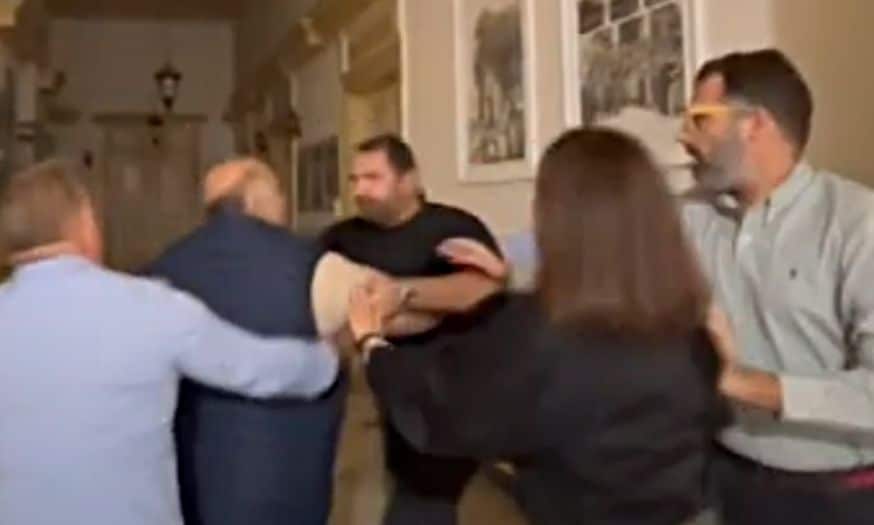 Δημοτικοί σύμβουλοι επενέβησαν για να τους χωρίσουν, ενώ κάποιοι προσπαθούσαν να ηρεμήσουν την κατάσταση.