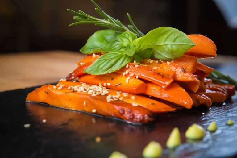 Ζεστάνετε το ελαιόλαδο σε μια κατσαρόλα σε μεσαία φωτιά. Ρίξτε τα καρότα και τα μυρωδικά στην κατσαρόλα. Μαγειρέψτε και ανακατέψτε μέχρι να πάρουν χρώμα τα καρότα, περίπου 8-10′. Προσθέστε προσεκτικά το βαλσάμικο και μαγειρέψτε για άλλα 3′. Προσθέστε την καστανή ζάχαρη στα καρότα και ανακατέψτε μέχρι να λιώσει, περίπου 2′.
