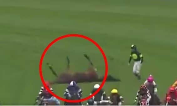 Ο Collett φαίνεται στα πλάνα να τρέχει για να κρατήσει το κεφάλι του αλόγου καθώς η υπόλοιπη ομάδα τρέχει προς τη γραμμή τερματισμού.