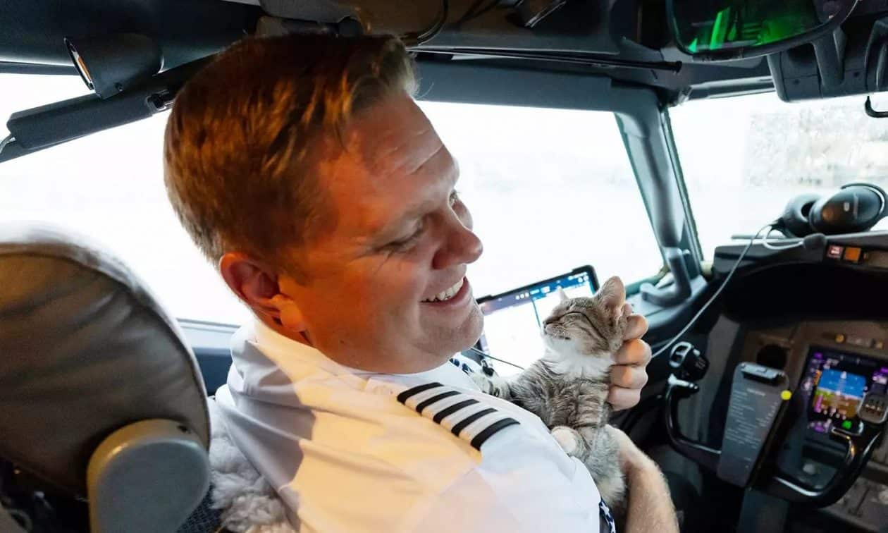 «Ο Avery το γατάκι είναι σίγουρα τυχερό και ήταν σαν στο σπίτι του με τον νέο του μπαμπά στο πιλοτήριο μόλις προσγειωθήκαμε και παρκάραμε».
