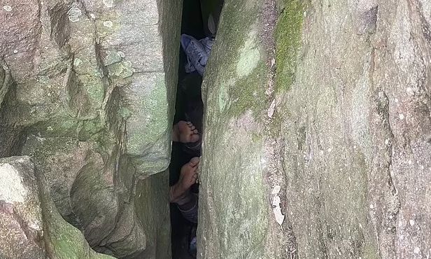 Η γυναίκα είχε προσπαθήσει να βγάλει το τηλέφωνό της ανάμεσα στα βράχια, αλλά γλίστρησε, έπεσε σε μια σχισμή τριών μέτρων και κρεμόταν ανάποδα.