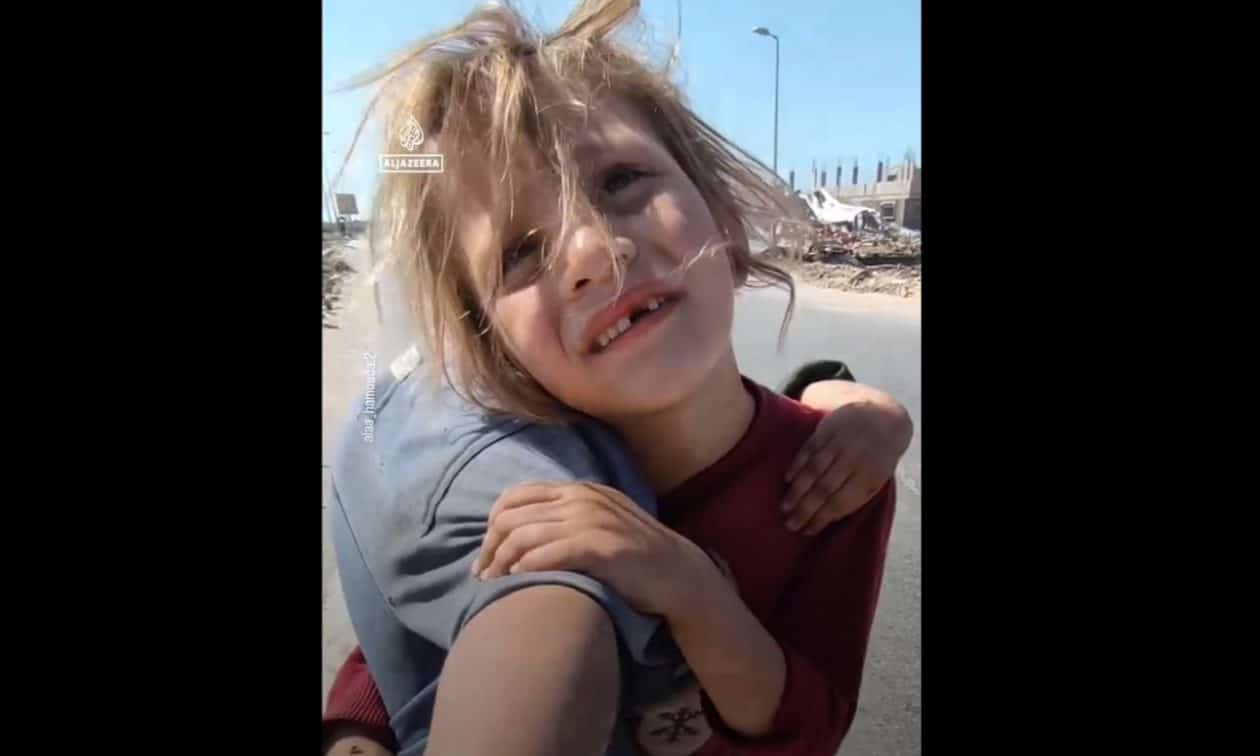 Πλάνα από ένα βίντεο που δείχνουν ένα ξυπόλητο κορίτσι να κουβαλά στην πλάτη της την αδελφή της, που τραυματίστηκε σε τροχαίο ατύχημα στην πόλη της Γάζας, αναζητώντας ιατρική περίθαλψη, κάνουν τον κύκλο του διαδικτύου.