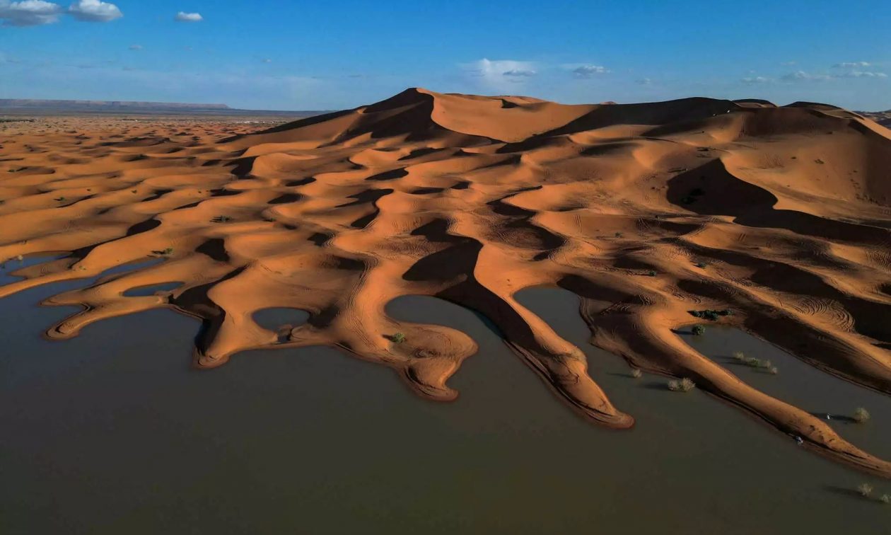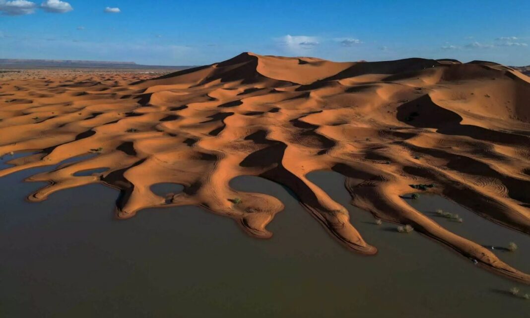 Εικόνες από drone από την έρημο Σαχάρα δείχνουν μεγάλες λίμνες να έχουν σχηματιστεί ανάμεσα σε αμμόλοφους και φοίνικες σε ένα από τα πιο άνυδρα μέρη του κόσμου που πλημμύρισε για πρώτη φορά μετά από δεκαετίες