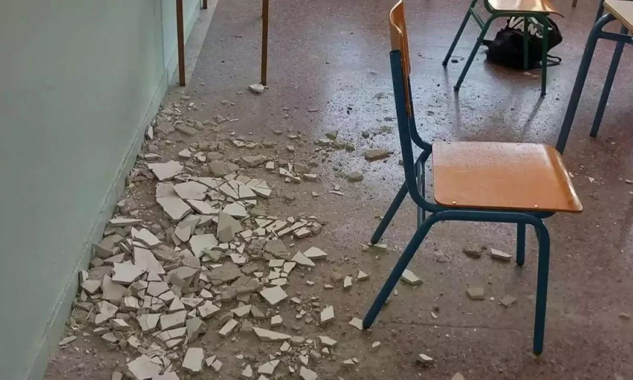 Σοβάδες έπεσαν σε αίθουσα του 9ου δημοτικού σχολείου Κέρκυρας, ευτυχώς όταν δεν βρίσκονταν μέσα μαθητές.