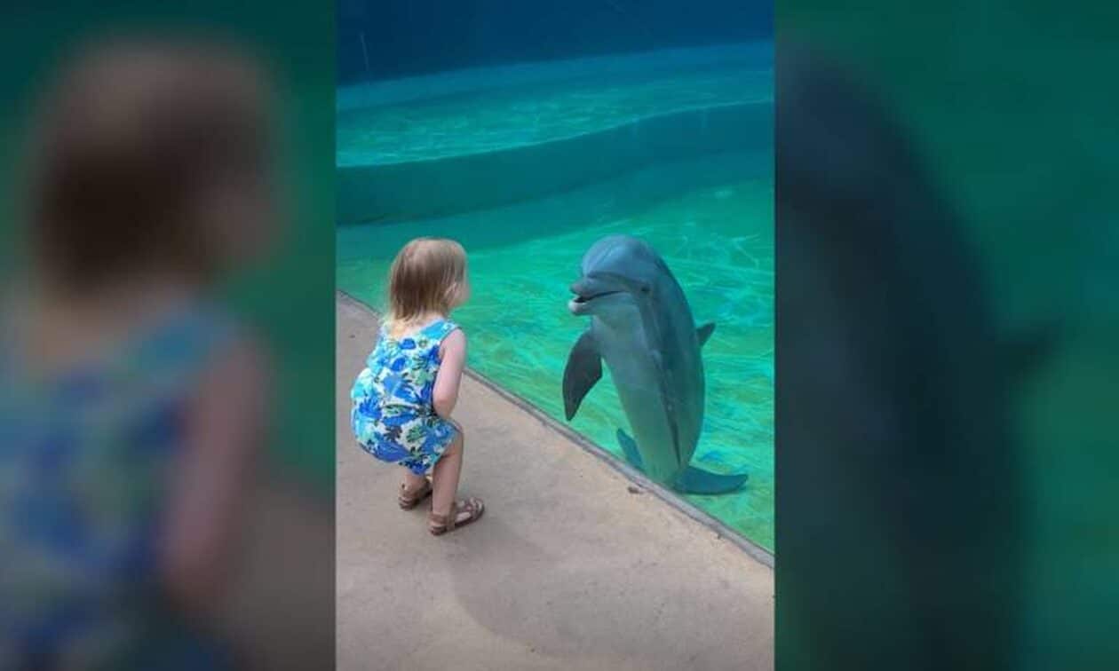 Το δελφίνι πλησίασε την μικρή Ryenn και αφού σταμάτησε μπροστά της άρχισε να αλληλεπιδρά μαζί της μοιάζοντας σαν να… προσπαθεί να της μιλήσει.