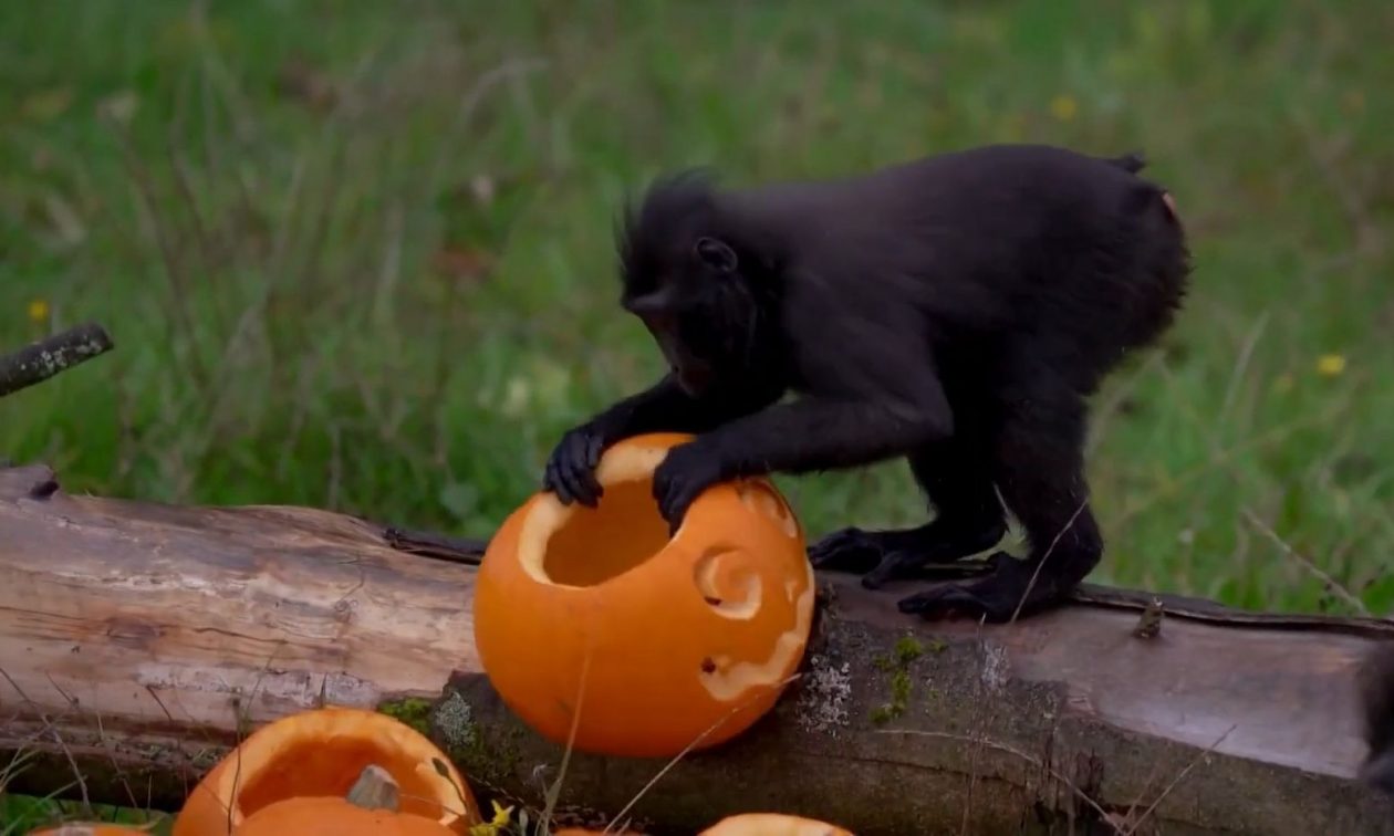 Οι φύλακες του ζωολογικού κήπου ZSL Whipsnade στην Αγγλία πρόσφεραν στα ζώα μια αποκριάτικη λιχουδιά στις 23 Οκτωβρίου, δίνοντας κολοκύθες γεμάτες με σνακ σε πιθήκους, γιακ και μπαμπίρους (ένα είδος χοίρου).