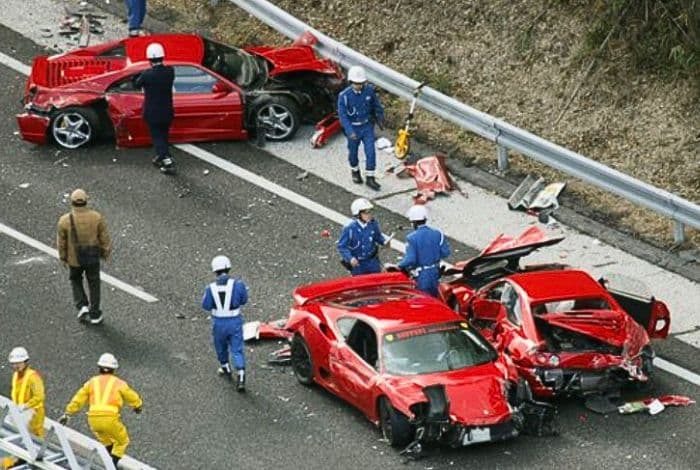 Για να μιλήσουμε με αριθμούς, συνολικά μπλέχτηκαν στο τρακάρισμα 14 αυτοκίνητα: οκτώ Ferrari, τρεις Mercedes, μία Lamborghini Diablo, ένα Nissan Skyline κι ένα Toyota Prius.