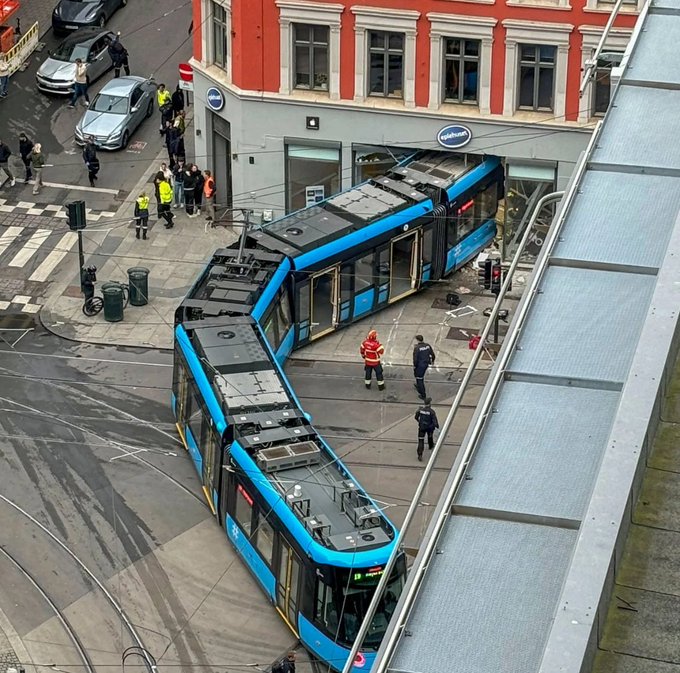 Σοβαρό ατύχημα σημειώθηκε σήμερα στο κέντρο του Όσλο, όταν τραμ εκτροχιάστηκε και προσέκρουσε σε κατάστημα της περιοχής Storgata. Το περιστατικό συνέβη λίγο μετά τις 11 το πρωί, με το εν λόγω τραμ να χάνει την πορεία του σε διασταύρωση και να καταλήγει σε βιτρίνα του καταστήματος τεχνολογίας Eplehuset.