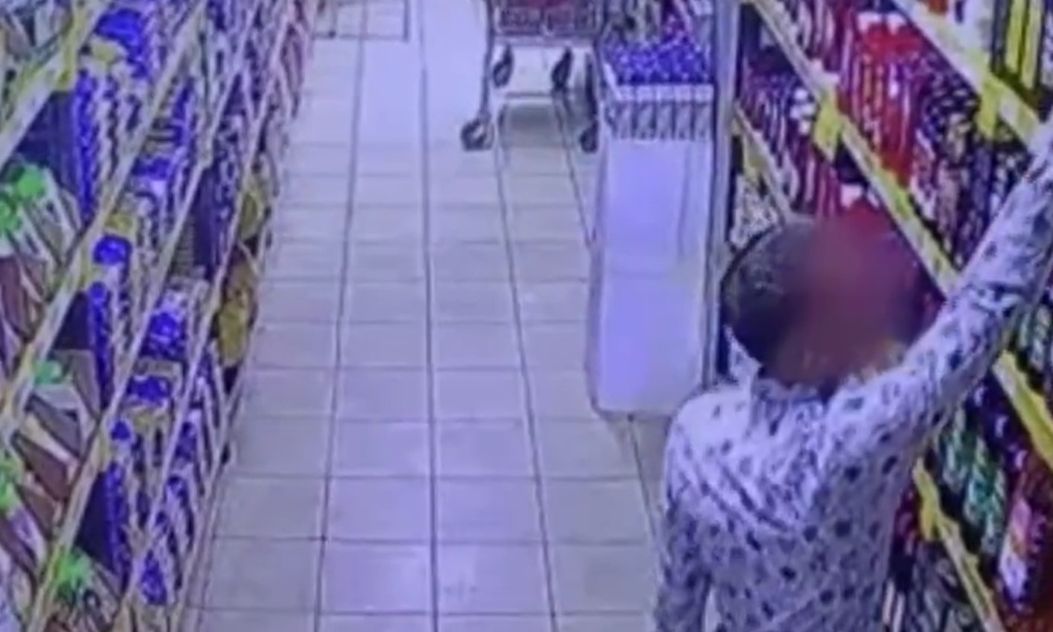 Στο βίντεο από κάμερα ασφαλείας φαίνεται ο άνδρας να κρύβει και τα δύο μπουκάλια στο παντελόνι του.