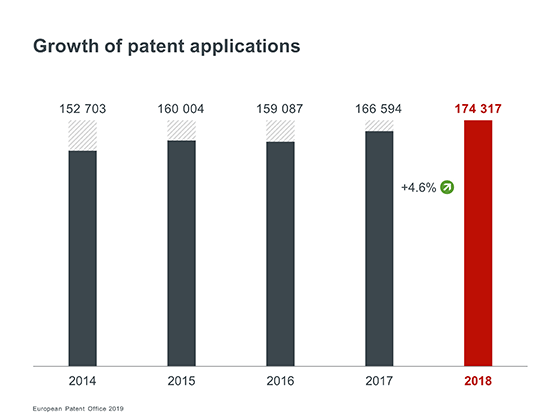 Εξαιρετικά παραγωγικό αποδεικνύεται το επιχειρηματικό δυναμικό της Ευρώπης στον τομέα της καινοτομίας, ιδίως της ψηφιακής καινοτομίας, με τις ευρωπαϊκές εταιρείες να υποβάλλουν το 2018 αυξημένο αριθμό αιτήσεων για διπλώματα ευρεσιτεχνίας. Για την ακρίβεια, ο αριθμός των αιτήσεων, που κατατέθηκαν στο Ευρωπαϊκό Γραφείο Διπλωμάτων Ευρεσιτεχνίας, αυξήθηκε κατά 4,6% πέρυσι, φθάνοντας στον αριθμό ρεκόρ των 174.317 αιτήσεων (2017: 166.594).