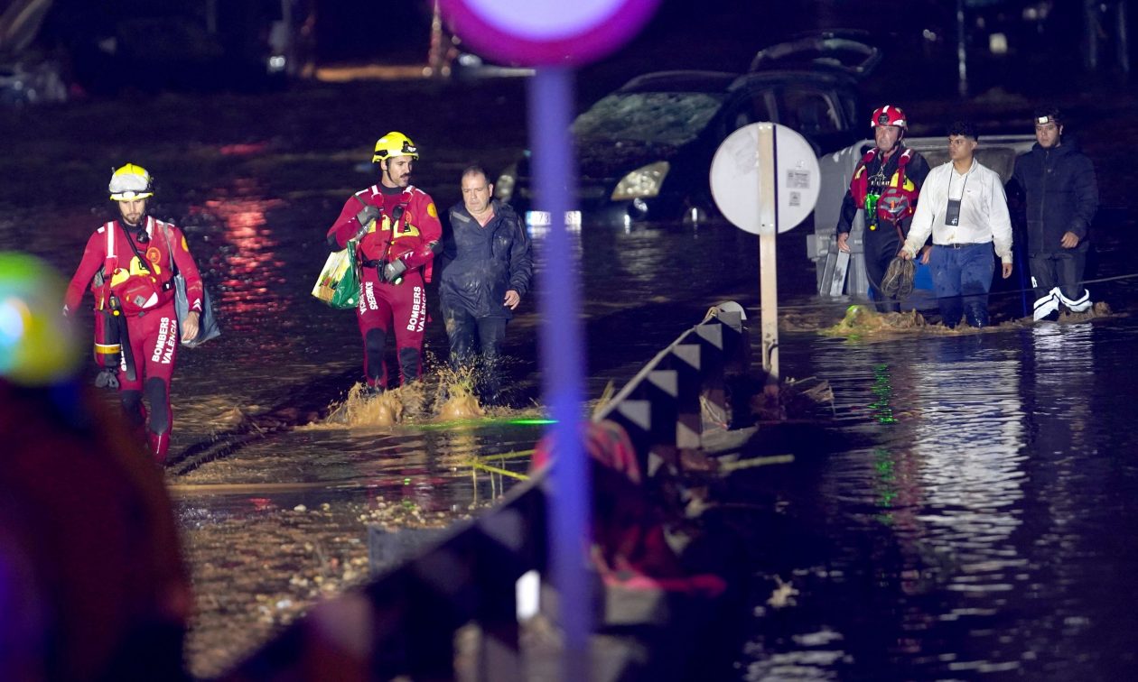 Δεκάδες άνθρωποι πέρασαν τη νύχτα στη Βαλένθια πάνω σε φορτηγά ή αυτοκίνητα, στις στέγες καταστημάτων ή βενζινάδικων ή έχουν παγιδευθεί στα οχήματα, όντες αποκλεισμένοι σε πλημμυρισμένους δρόμους.