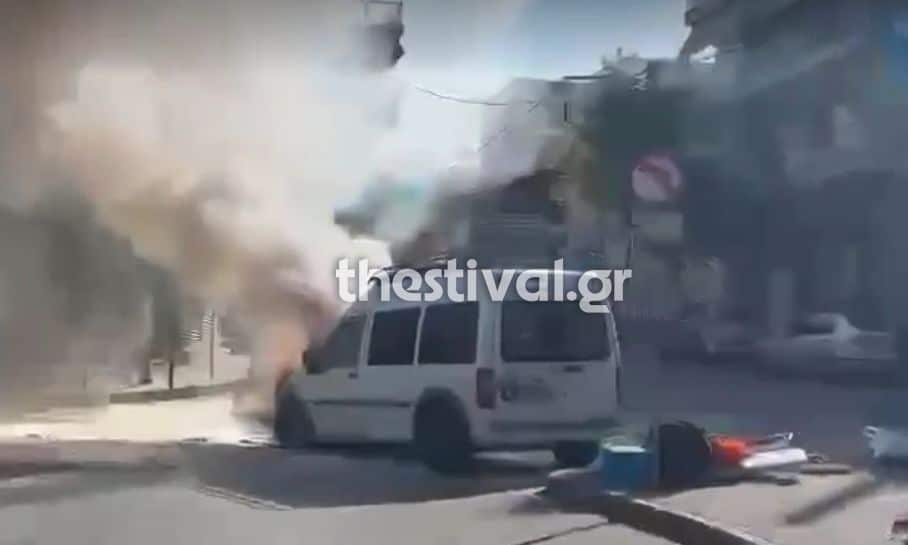 Στις φλόγες τυλίχθηκε νωρίτερα, σήμερα, ένα εν κινήσει βανάκι στην περιοχή των Συκεών, στη Θεσσαλονίκη.