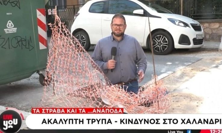 Ένα ακόμα ευτράπελο των ελληνικών δρόμων φέρνει στην επιφάνεια ο ΣΚΑΪ. Οι κάτοικοι στην περιοχή του Χαλανδρίου καθημερινά διατρέχουν κίνδυνο από μια παγίδα στην οδό Ύδρας.