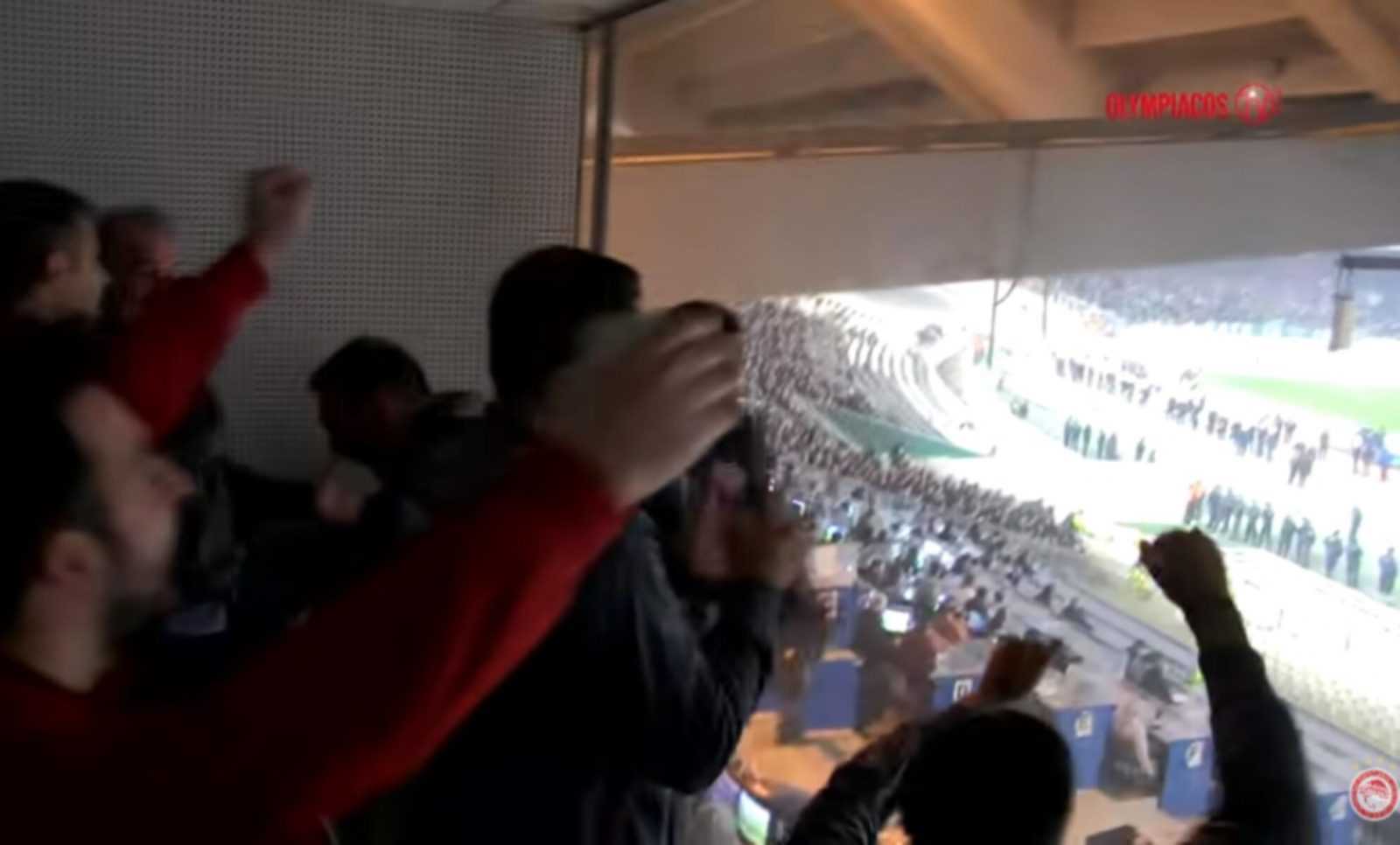 Η παρακάμερα του “Olympiacos TV” μας δείχνει -μεταξύ άλλων- τους πανηγυρισμούς των μελών της αποστολής του Ολυμπιακού στο μπουθ του ΟΑΚΑ, μετά το 0-1 με τον Γκερέρο στο ντέρμπι με τον Παναθηναϊκό.