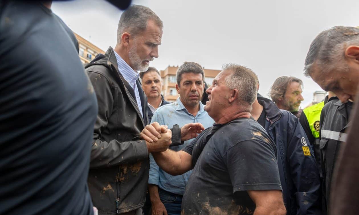 Οι πλημμυροπαθείς αντέδρασαν με οργή κατά του βασιλιά Φελίπε, φωνάζοντας «δολοφόνοι», ζητώντας να φύγει, καθώς οι καταιγίδες άφησαν πίσω τους 214 νεκρούς, αγνοούμενους και απίστευτες καταστροφές στις περιουσίες τους.