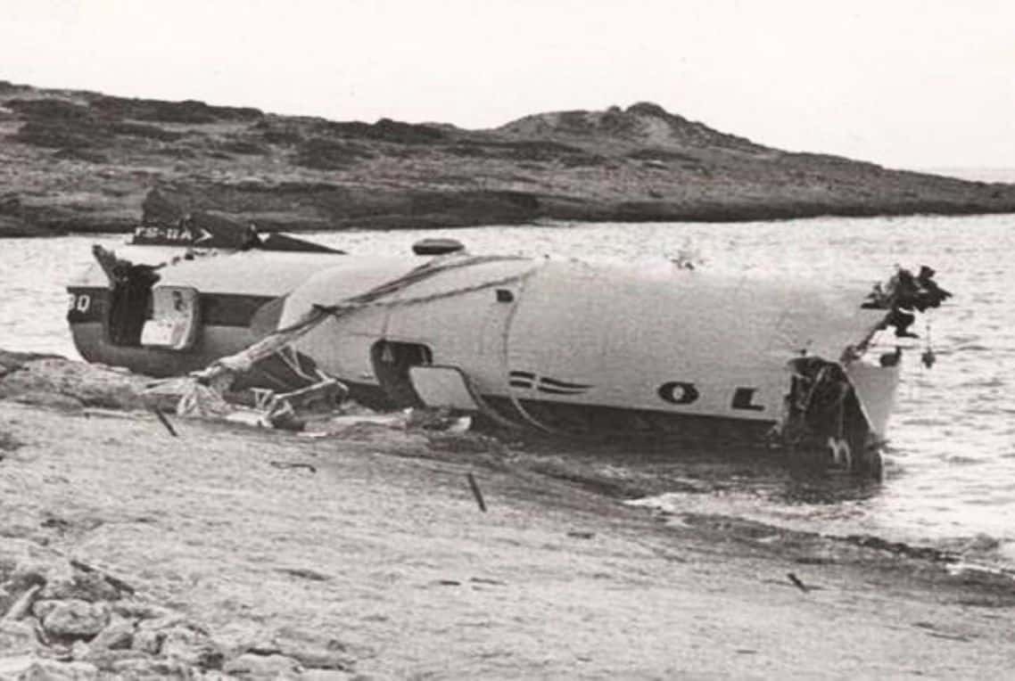 Το αεροπλάνο είχε καταπέσει σε απόσταση 5 χιλιομέτρων από το αεροδρόμιο Ελληνικού, στη θαλάσσια περιοχή της Βούλας, κοντά στο θεραπευτήριο του ΠΙΚΠΑ.
