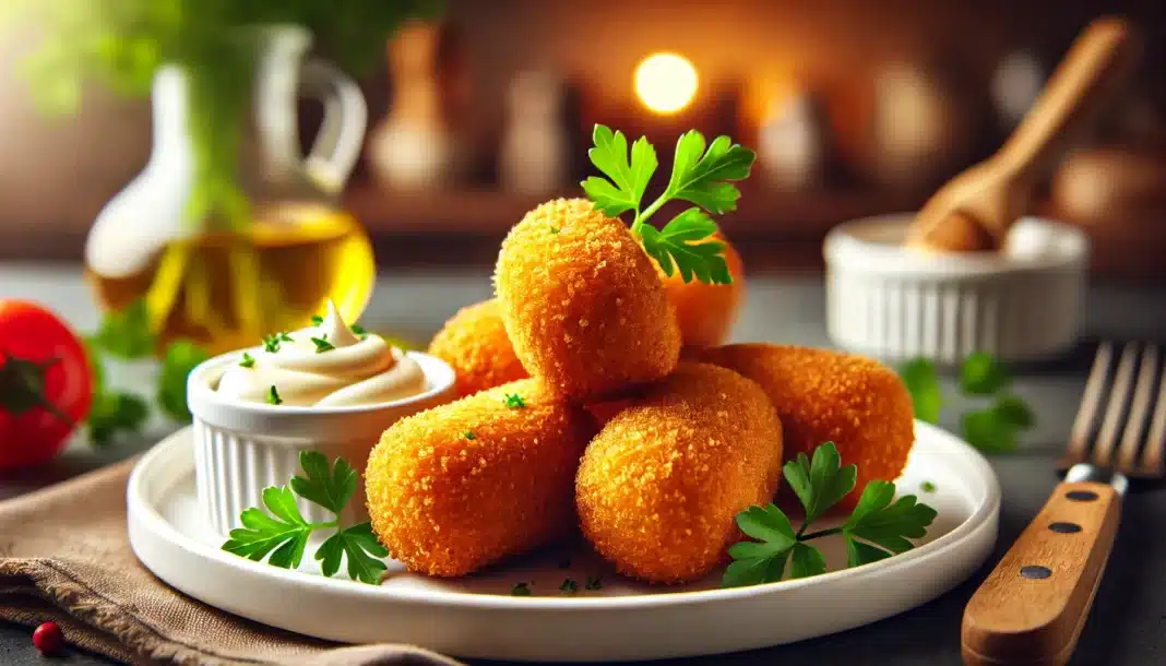 - Σερβίρισμα: Σερβίρετε τις πατατοκροκέτες ζεστές, με λίγη μαγιονέζα ή κάποια σάλτσα της επιλογής σας.