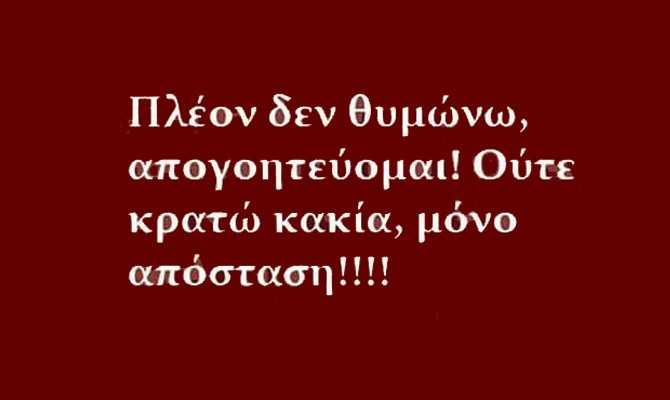 Πλέον δεν θυμώνω… Ούτε κρατώ κακία, μόνο απόσταση!