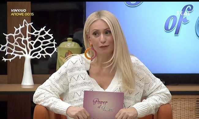 Η όμορφη παρουσιάστρια του Power of love, θέλει να βλέπει τους παίκτες αγαπημένους και όταν βλέπει ότι υπάρχει πιθανότητα κάποιοι να ταιριάζουν, δεν διστάζει να το εκφράζει και να προσπαθεί να τους τα «βρει».