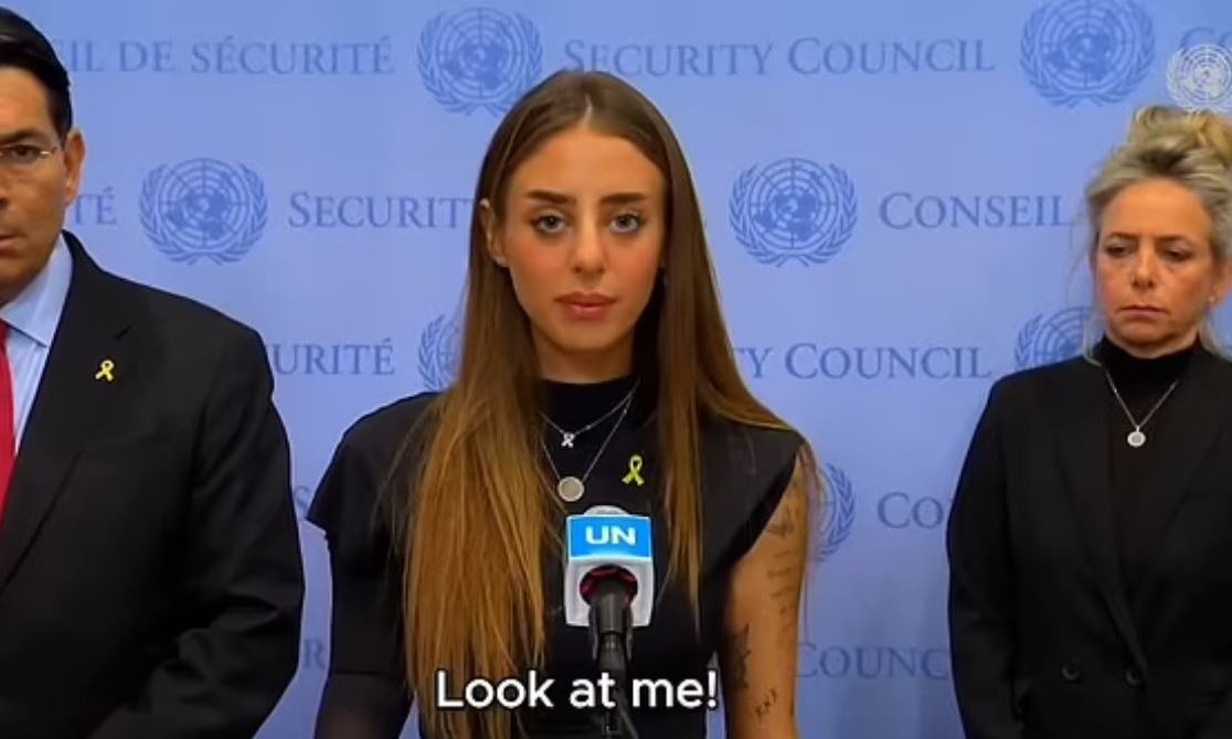 «Η καρδιά μου είναι ακόμα μαζί τους, αιχμάλωτη στη Γάζα. Στέκομαι εδώ και απαιτώ να τους φέρεις όλους στο σπίτι τώρα! Έχει περάσει πάνω από ένας χρόνος και ο ΟΗΕ δεν σήκωσε το δάχτυλο για να απελευθερώσει τους ομήρους», πρόσθεσε.
