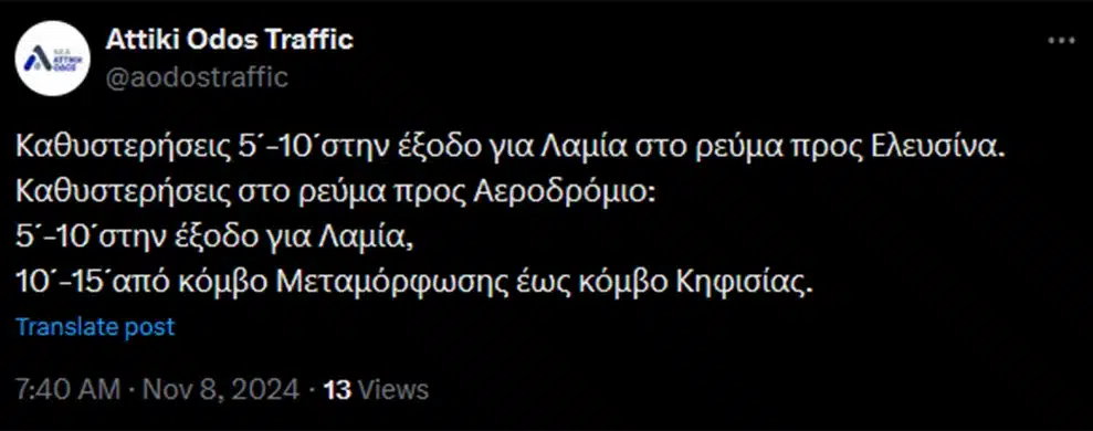 Σύμφωνα με την Αττική Οδό, παρατηρούνται καθυστερήσεις: