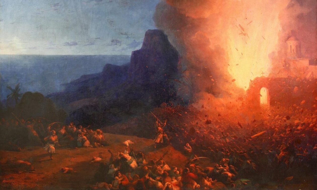 Όταν οι Τούρκοι έφτασαν στην πόρτα της πυριτιδαποθήκης, οι Έλληνες πραγματοποίησαν την ηρωικότερη πράξη, καθώς με τη βοήθεια του Γιαμπουδάκη έβαλαν φωτιά στα βαρέλια με την πυρίτιδα, θυσιάζοντας τον εαυτό τους και συνάμα θανατώνοντας πολλούς Τούρκους.