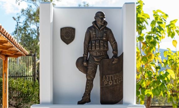 Το μνημείο που στήθηκε προς τιμήν του αρχιφύλακα Γιώργου Λυγγερίδη, που δολοφονήθηκε κατά τη διάρκεια επεισοδίων στου Ρέντη, αποκαλύφθηκε σήμερα στο Γουδί, στον χώρο της έδρας των ΜΑΤ.