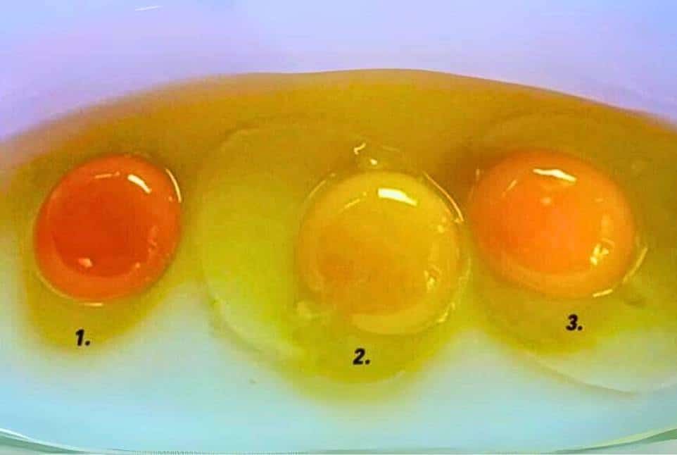 Τι μπορείτε να καταλάβετε από το χρώμα του κρόκου ενός αυγού για την υγεία της κότας Γνωρίζετε ποιο από αυτά τα τρία αυγά είναι το πιο υγιεινό;