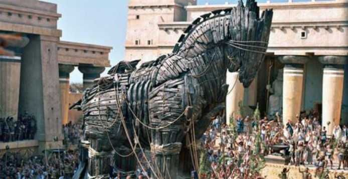 Οι αρχαίες πηγές το αναφέρουν, αλλά με άλλο όνομα. Ηταν ο Δούρειος Ιππος, το ξύλινο ομοίωμα αλόγου που, γεμάτο πολεμιστές κρυμμένους στο εσωτερικό του, αφέθηκε στην παραλία, δήθεν αφιέρωμα στη θεά Αθηνά.