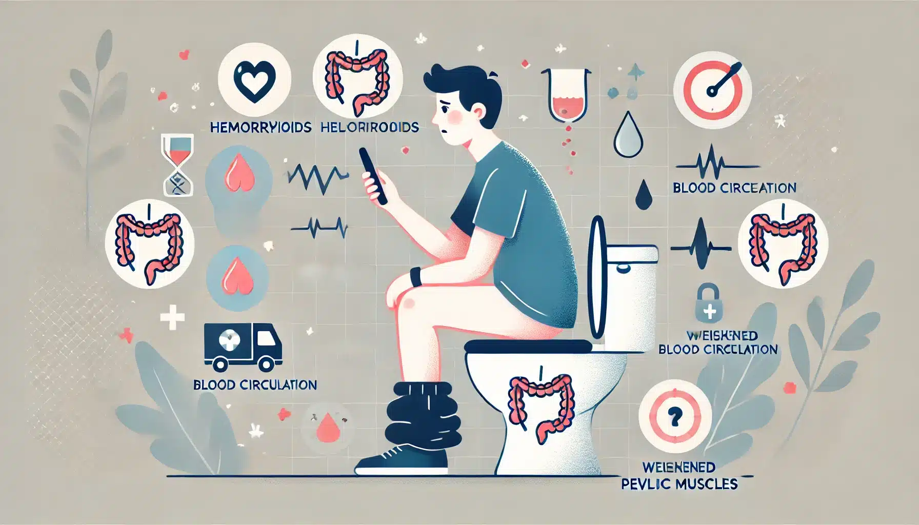 Ο Δρ. Lai Xue, χειρουργός παχέος εντέρου, εξηγεί πως η θέση του σώματος στην τουαλέτα αυξάνει την πίεση στο κάτω μισό του σώματος λόγω της βαρύτητας. Το ανοιχτό, οβάλ κάθισμα συμπιέζει τους γλουτούς και επιτρέπει στο ορθό να βρίσκεται σε χαμηλότερη θέση, δυσκολεύοντας την κυκλοφορία του αίματος. Αυτό μπορεί να οδηγήσει σε διόγκωση των φλεβών και αύξηση του κινδύνου αιμορροΐδων, καθώς το αίμα εγκλωβίζεται στην περιοχή.