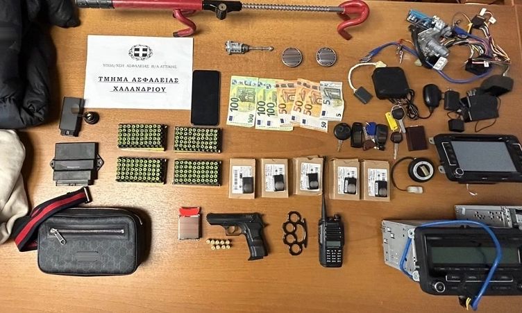 Χαλάνδρι: Οι αστυνομικοί κατέσχεσαν μεταξύ άλλων, πιστόλι, αβολίδωτα φυσίγγια αλλά και συσκευές οι οποίες συνδέονται με τον εγκέφαλο οχήματος – Αναζητούνται οι συνεργοί τους