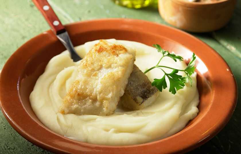 Μπακαλιάρος: Αλευρώνουμε τα κομμάτια του μπακαλιάρου και τα τηγανίζουμε σε μπόλικο καυτό λάδι, σε δόσεις, μέχρι να ροδίσουν όμορφα και από τις δύο πλευρές. Σερβίρουμε την αλιάδα με τον μπακαλιάρο και βραστά λαχανικά.