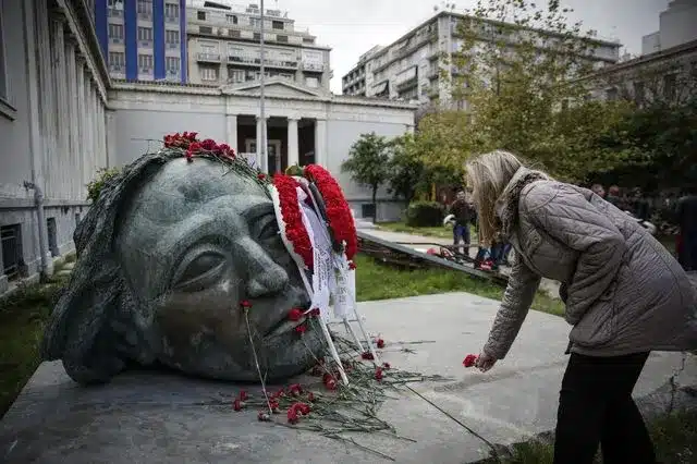 Επέτειος του Πολυτεχνείου: Κατατέθηκαν λουλούδια, ζωγραφιές  & η σημαία της Παλαιστίνης