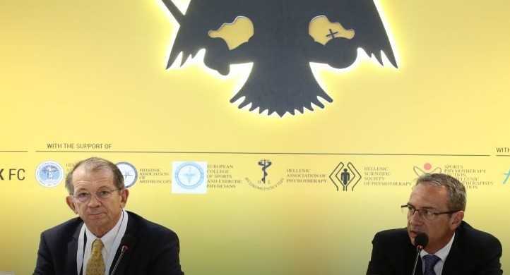 Θα μου επιτρέψετε μια ξεχωριστή αναφορά στο ιατρικό επιτελείο της ομάδας μας, τον Λάκη Νικολάου, τον Άλκη Καλλιακμάνη και τους συνεργάτες τους, για την προσπάθεια που κατέβαλαν και τον χρόνο που αφιέρωσαν ώστε να μπορέσει και φέτος η ΠΑΕ ΑΕΚ να διοργανώσει με υπερηφάνεια αυτό το υψηλού κύρους Ιατρικό Συνέδριο, το -και προσωπικά- αναμένω με τεράστιο ενδιαφέρον και το οποίο φιλοδοξούμε να γίνει θεσμός».