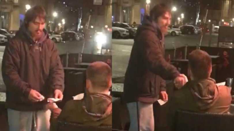 Ο Φάντα δε μπορούσε να πιστέψει στα μάτια του βλέποντας τον άστεγο να απομακρύνεται με την κάρτα και το PIN του γενναιόδωρου νεαρού, αρχίζοντας να καταγράφει το σκηνικό με το κινητό του τηλέφωνο, όμως όσα ακολούθησαν έκαναν την έκπληξή του ακόμη μεγαλύτερη.