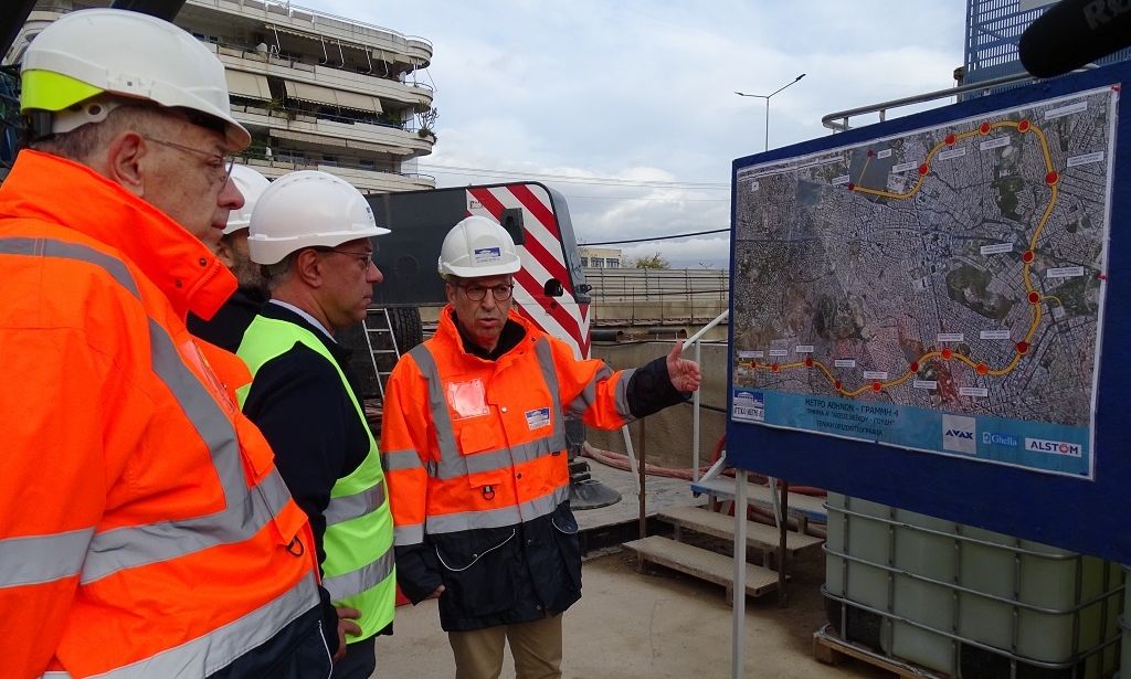 Η ηγεσία του Υπουργείου Υποδομών και Μεταφορών επισκέφθηκαν το εργοτάξιο κατασκευής της Γραμμής 4 του Μετρό, στη Βεΐκου.