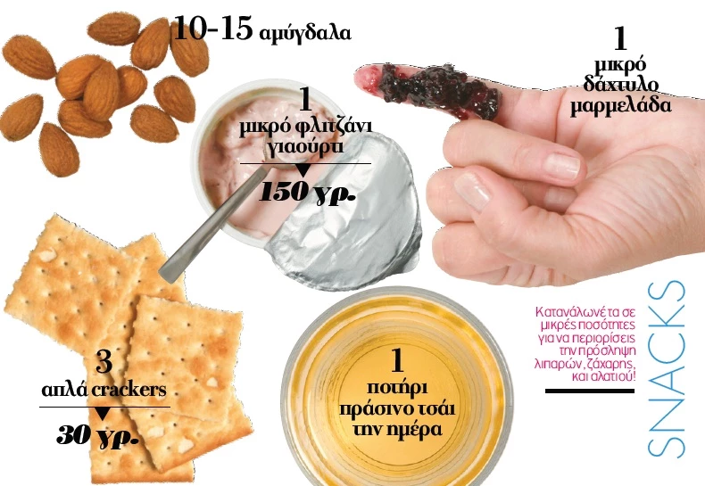 3 μερίδες λαχανικά και 2 μερίδες φρούτα,